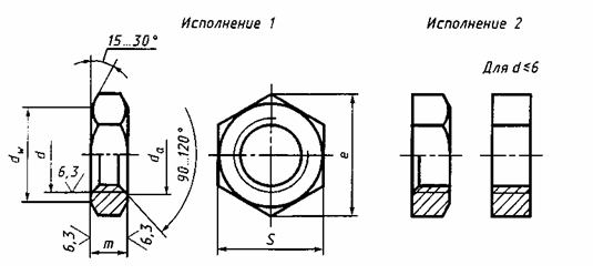 Гайки шестигранные с уменьшенным размером "под ключ", класс точности В ГОСТ 15522-70.