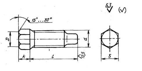Винт установочный с шестигранной головкой и цилиндрическим концом, класс точности A и В ГОСТ 1481-84.